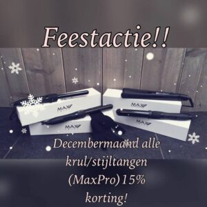 Feestactie! In de December maand 15% KORTING op alle krul- en stijltangen van MaxPro!